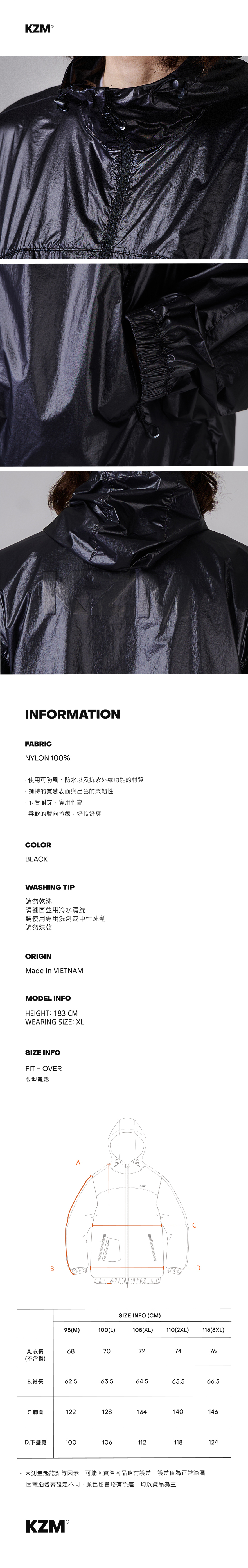 KZM J02 HYPORA 輕量防水外套(亮面黑)
